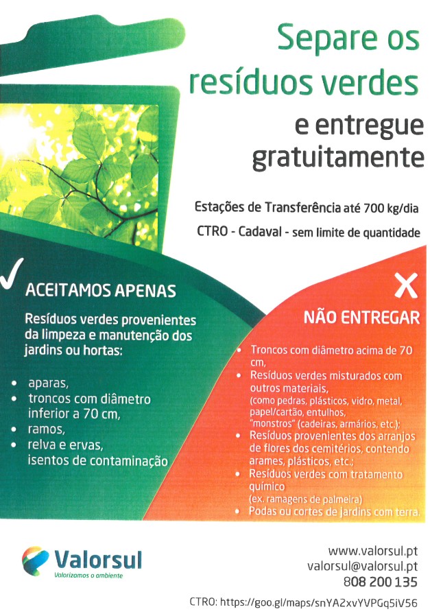 separe os resíduos verdes e entregue gratuitamente